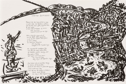 Image drawn on the plate by Jan Senbergs; poem hand-written by Chris Wallace-Crabbe and produced as a photo-lithograph, printed by APW Senior Printer Martin King at Australian Print Workshop, Melbourne, 2016